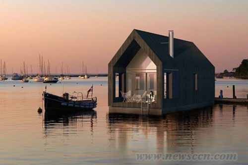 漂浮的房子是为拉脱维亚的长夏而设计的湖滨住宅。两层建筑中一层是起居空间,浴室和一个小平台,二层上是卧室区。墙和屋顶使用了同一种材料,达到了一种和谐的外观。住宅以浮桥为基础的地下层中,储藏洁净的淡水,过滤可循环的水和燃料箱。