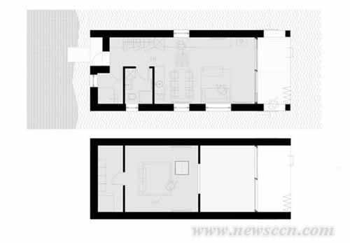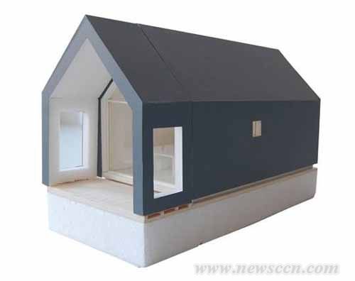 设计要求墙和屋顶使用一种木质材料,使建成的房屋有一种现代的、统一的外观,好像整个建筑物从一块木材上切割下来的一样。
