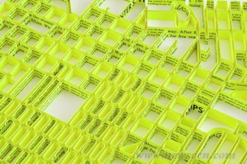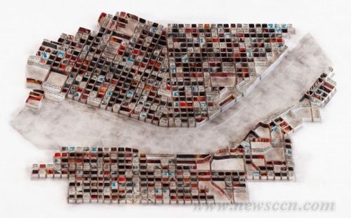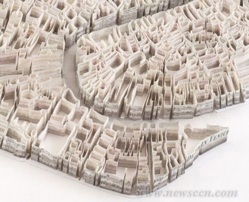 “Map Sculptures”系列是由英国艺术家Matthew Picton一手打造的纸雕城市,曾在伦敦政治经济学院主修政治与历史,因此对于城市的文化与历史相当有热诚且熟悉,经由纸雕艺术描绘世界着名大城市,如:纽约、伦敦、耶路萨冷、威尼斯…等等,材料都是日常生活容易看见的书籍杂志、乐谱、贴纸,根据他对城市的印象与感觉而有所不同,藉由纸的柔软度呈现风情万种的都市样貌,考考你是否可以从外型判断出是哪个城市呢? 也许你曾在许多艺术设计杂志看过Matthew 的作品,有些作品也被知名的美术馆如 The De Young Museum、London, UK… 等搜藏,擅长艺术雕塑的他,除了纸雕,也运用其他特殊媒材的作装置艺术的作品与其他创作。