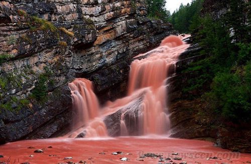 由于雨水冲刷一种叫做“argolite”的红色水中沉积层,卡梅伦瀑布的水变成了“番茄般”的红色。