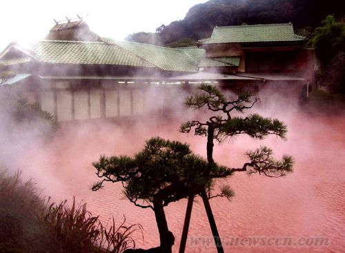 日本别府拥有2900多处温泉,其中九大“地狱”最为著名。它们有着生动的名字,如“海地狱”和“鬼石坊主地狱”。还有排在第一位的“血地狱”,因其池水含铁,所以呈现出红色。