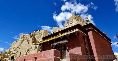 阿里古格王国遗址位于西藏自治区阿里地区札达县境内,距今已有1000多年的历史。据史料记载,公元9世纪,吐蕃王朝后代在此建立了古格王朝。现存遗址的山脚处有300余间成排的窟洞和简陋的房屋遗迹以及山腰上高大的庙宇和密集的僧房遗迹,内有佛像雕塑和色彩艳丽的壁画。作为西藏文明的重要组成部分,1961年古格王国遗址被列为全国首批重点文物保护单位。 阿里古格王国遗址是全国第一批重点文物保护单位之一。古格王国是在公元十世纪前后,由吐蕃王朝末代赞普朗达玛的重孙吉德尼玛衮在王朝崩溃后,率领亲随逃往阿里建立起来的。遗址在阿里扎达县札不让区象泉河畔的一座土山上,占地约18万平方米,共有房屋洞窟300余处、佛塔(高10余米)3座、寺庙4座、殿堂2间及地下暗道2条。外围建有城墙,四角设有碉楼。整个遗址建在一小土山上,建筑分上、中、下三层,依次为王宫、寺庙和民居。在其红庙、白庙及轮回庙的雕刻造像及壁画中不乏精品。围绕古格都城札不让的重要遗址还有东嘎、皮央等,均有大量文物遗存。