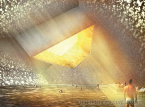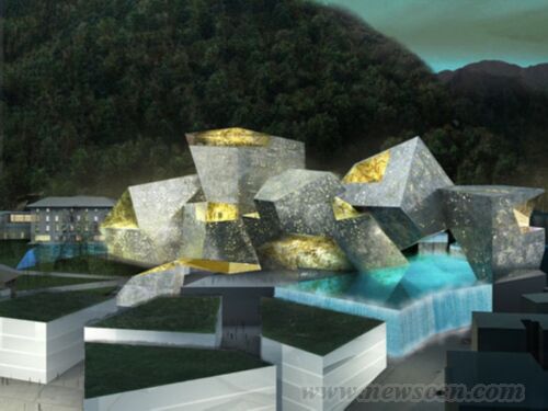 由多米尼克佩罗设计的辉光热温泉水疗中心,赢得了在意大利举行的国际热浴建筑设计竞争,建筑师使用景观和地理作为一个关键的参考点,设计出新的结构,建筑物看上去像一块块石头的叠积,所有窗口都用这些像石头的建筑物的不同颜色来搭配,从而形成一种辉光四射的热温泉水疗中心,锯齿形的外观,如同世外桃源一般的景象,给人一种梦幻,温馨般的感觉。