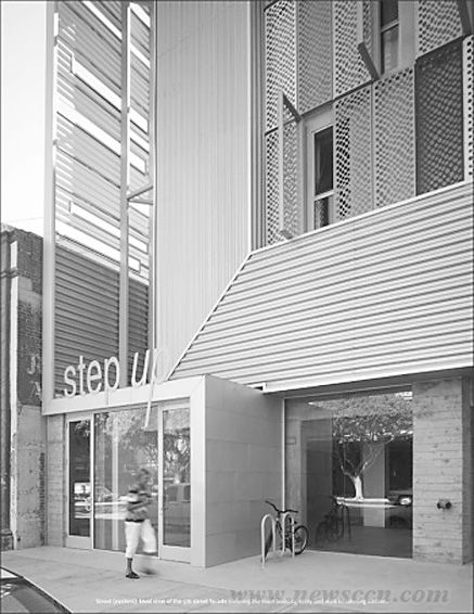 概述 该建筑是2009年4月完成于加利福尼亚州的生莫尼卡市区的新建筑,主要应用于特殊需要用房,零售,多单元住宅,商业办公等领域。建筑面积达2940平方米。 这个混合使用的建筑为圣莫尼卡市中心的无家可归者和患有精神疾病的人士提供了46套经济适用房和相应的支持服务。这个建筑的住宅密度是43居住单元/亩,超过了曼哈顿平均住宅密度的10%以上。这个混合使用计划包括地面商业空间。 环境因素 这个建筑有别于大多数传统开发的项目,它采用超过标准做法的节能措施,优化建筑性能,并确保在施工各个阶段和居住期间减少能源使用。这个规划设计源于仔细考量和被动设计策略的运用。这个建筑比传统设计的同类型结构建筑节能近50%。 Vancouver Convention Centre West温哥华会议中心