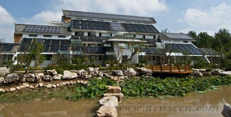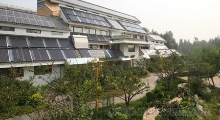该建筑总面积1252㎡,以“零能耗”为设计建造标准,综合运用了太阳能热水、太阳能采暖制冷、太阳能鹅卵石蓄能、太阳能与地源热泵、太阳能烟囱、被动式太阳房、温屏节能玻璃、高效围护保温、无线远程监控等12项建筑节能技术。它利用太阳能蓄能技术,将春、秋季产生的热量储存在地下室鹅卵石结构的蓄能体内;进入冬季,则把储存的热量提取出来用以采暖,每年可节约标准煤43.3吨,减排二氧化碳115.3吨,真正实现了“零能耗”,成为中国传统园林建筑与现代太阳能技术结合的典型模板。 |
