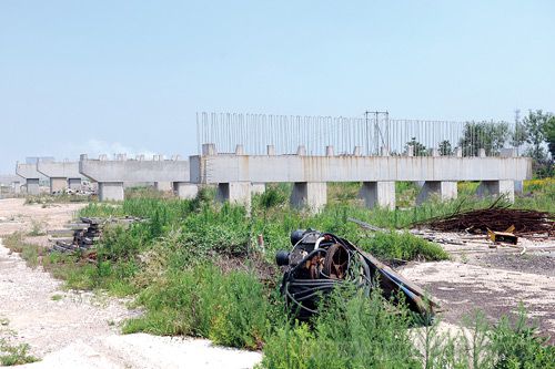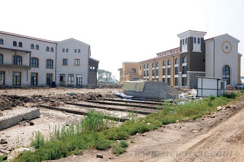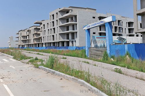 曹妃甸,从默默无闻的小岛到成为被寄予厚望的经济引擎,到如今陷入债务漩涡,只用了十年时间。在跌宕起伏间,这座“明日之城”难掩今日的尴尬和窘境,正等待着转机的出现…… 几处钢筋、水泥裸露在外的建筑框架,零星点缀着一眼望不到尽头的工地;一两辆偶尔可见的挖土车,停放在荒草丛中;近百部印有“冀东·油田”标识的游梁式抽油机,节奏缓慢地开采着油田……这是记者7月5日走访被誉为“明日之城”的唐山湾生态城(原名为曹妃甸国际生态城)时,看到的一幕。 曹妃甸,自2003年启动开发建设以来,从一个不足4平方公里的带状沙岛,发展成如今累计填海造陆超过230平方公里、总投资达3000亿元、规划面积达380平方公里的曹妃甸工业区。 建设之初,曹妃甸基于自身港口、资源和区位条件的优势,确定了大港口、大钢铁、大化工、大电力的四大产业战略发展计划。2006年,首钢集团搬迁到曹妃甸,当地政府本想借其千万吨炼钢项目上马之势大力发展钢铁业,拉动地方循环经济的发展,却未曾料到,受我国近几年钢铁产能过剩和项目事故频发的影响,首钢集团一期千万吨精品钢铁项目至今仍未扭亏为盈。而其他三大产业的发展也未能达到预期效果,加上早期用于基础设施开发的巨额贷款无法还清,致使曹妃甸工业区的建设项目因资金链断裂而烂尾。社会各界纷纷对曹妃甸在这种困局下如何收场表示忧虑。 陷入瘫痪的“明日之城” 记者在唐山湾生态城看到,大面积的工地和建设项目被搁置。其中,与唐山湾生态城配套发展的青龙湖商业街项目的主体建筑已基本完工,但工地上仍是一片荒芜的景象。市政管道、电线浸泡在水里,三两个工人正忙着从货车上往下卸泥土。当记者问道为什么只有几个工人在现场时,一位工人师傅告诉记者,工程2010年就开工了,原计划今年十月完工,但工程后期因缺钱停工了。他是工长,老板原本承诺给他每个月6000元的工资,但到现在连一个月的工资都未兑现。 另一个有着瑞典风格的欧式建筑楼盘橙霞家园,因为曹妃甸工业区管委会欠施工方2800万元的工程款,也被迫停工。负责橙霞家园施工的项目部经理介绍,该项目的建筑面积为148741.96平方米,2011年3月开工,项目建设到48000多平方米的时候,甲方的资金供应不上。起初,项目部还垫资了一部分工程款,但现在连水电费都付不起了,只好停工。 “签合同的时候,曹妃甸工业区管委会承诺在我们垫资后会给我们打工程款,但现在管委会没钱,把我们给套住了。每到年底,管委会门口都会聚集一拨要工程款的企业。”该项目经理说,“目前,橙霞家园的水电、配套管网都没有建成,只是把楼建起来了。因为是填海造陆,须将滩涂围垦成陆的海洋土地转为国有土地,所以曹妃甸去年经过评审才拿到《国有土地使用证》。管委会试图把这个证件抵押给银行来贷款,但是没有成功,欠施工企业的工程款补不上,整个曹妃甸处于资金链断裂状态。” 由于曹妃甸工业区管委会承诺拨给施工企业的工程款迟迟不能到位,意味着唐山湾生态城的建设项目将被无限期搁置,已经停工的项目,很有可能长期烂尾。 记者来到唐山湾生态城最重要的基础交通设施滦曹大桥的施工现场。锈迹斑斑的栅栏门将整个建设工地围住,预制好的桥梁横卧在荒草丛中,两排尚未架上桥梁的桥墩整齐地延伸向远方。 在冷清的工地里,一位工人告诉记者,偌大的滦曹大桥工地就剩下两个人了,项目2010年开工,但刚建了两个桥墩后就没钱了,一年后停工。工程最初是由中国葛洲坝集团公司负责施工的,现在已经分包给其他单位了。 随后,记者致电负责施工的项目部潘经理,了解到滦曹大桥全长330米,工程总投资5790万元,原计划于2010年底完工,但现在已经烂尾了。“工程投资方是唐山曹妃甸国际生态城投资有限公司,由于甲方资金不到位,工程于2011年5月23日就停工了。我们目前还欠着现场材料款、工人的工资,而当初垫资的工程款也是找民间拆借过来的,现在我们仍背负着高额利息。”潘经理说。 记者走访还发现,虽然唐山湾生态城彩虹家园、万年丽海花城、美和蓝湾等住宅楼盘已经完成了主体工程外立面的装修,但是无人入住。美和蓝湾的售楼小姐告诉记者,该楼盘共有1054套住宅,售价为2500元/平方米,现在卖得只剩下不到200套,而且很快就要入住了。但是该楼盘的一位物业管理人员的说法却恰好相反,他告诉记者:“小区的水电都没安装,怎么入住?” |