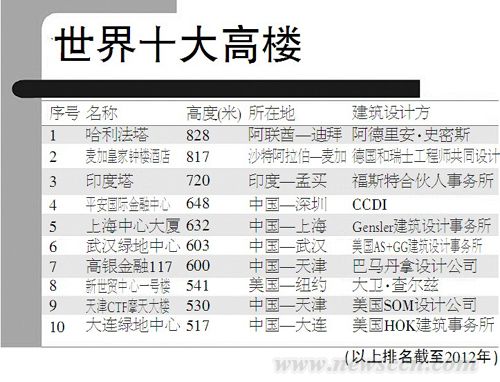 提起超高层建筑,人们自然而然会想到迪拜,一座哈利法塔足以震惊全球,总高度828米,如果一直未被超越,其设计师美国芝加哥公司的美国建筑师阿德里安·史密斯的头顶也将始终带着世界第一高楼建筑师的光环。虽然第一高的地位没有动摇,但是高度的争夺却非常激烈,早在哈利法塔尚未竣工之时,很多城市就已经开始跃跃欲试,计划刷新世界高度。由此,跳出技术主宰的超高层的世界,高度成为了建筑师们彰显个性和骄傲的战场。 现代高层建筑是随着社会生产的发展和人们生活的需要而发展起来的,是商业化、工业化和城市化的结果。所谓超高层建筑,又称为超高层大楼,即非常高的多层建筑物。我国的超高层建筑在世界上也位居前列。