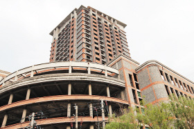 今年2月,海南兰海集团拍下大楼的产权,近期将启动续建。未来7年,这座大楼可能将成为长春火车站商圈的地标性商业综合体。 两个主体 先后停业停工 长春五环休闲娱乐广场位于嫩江路4号,是一个综合性、多元化、超大型商业经营项目,包括五环休闲广场和五环新闻大厦两个主体工程。 站前街道办事处副主任郭永刚介绍,五环休闲广场是1995年动工,1998年竣工投入使用,营业期间曾火爆长春。后来转租给唐人街商业经营公司,当时称为市民皆知的唐人街大厦。2004年,由于扩大经营规模,资金链崩断被迫停业,至今没有恢复营业。 五环新闻大厦毗邻休闲广场,两楼相距12米,该项目1996年动工,2003年停工时,建筑主体及外墙砌筑等土建工程已全部完成。 |