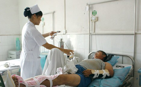 : 医护人员在救治伤员。记者谢奎摄