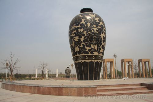日前,河北省邯郸市峰峰矿区昭德广场的标志性建筑之一——两个巨大的陶瓷梅瓶制作完成。这两个陶瓷梅瓶分别坐落于广场东西两侧,高9.9米,最大直径5.18米。每个梅瓶由486块烧制陶体拼接而成,瓷体重36吨。 为充分体现峰峰矿区的地域文化特色,提高城市文化生活品位,峰峰矿区在成峰公路新坡镇前朴子村北段新建了昭德广场,投资近5300万元。该广场规划占地约7万平方米,规划设计地形为4个扇面形状,直径为300米,形如展开的花瓣。峰峰矿区得名于境内的两座山峰,城标设计中提纯为几何形态,大胆运用凹凸手法,形成一定的序列美,整个山体体态走向微显弧形,体现一种环抱感。山体的内部结构设置楼梯,可使游人登高远望,使之成为峰峰第二个公众登高远望点。在墙面浮雕上采取高提纯的文字作为装饰,在视觉上形成仰视效果,营造一步一高的效果,从南北向的路口处看去,更能感受到一种恢宏的气势。 据悉,这两个瓷瓶由20名技术人员,历时6个月烧制30窑而成。该梅瓶为全国目前最大的梅瓶,边缘部分设计了9根圆柱,象征峰峰9个镇团结统一;梅瓶制作采用了传统的磁州窑纹饰。主题画面为磁州窑传统的黑剔牡丹纹,腰线装饰为富贵不到头纹饰,底足为莲花纹装饰。整体寓意平安、富贵、吉祥。 |
