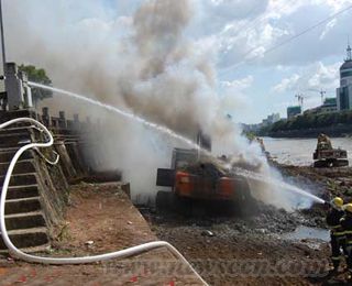 据挖掘机司机介绍,他正驾驶着挖掘机清理河中的淤泥,突然他一脚油门踩下去油门踏板无法回位,发动机一直在高速运转着,过了没多久车子就冒烟了。 赶到现场的消防官兵发现,挖掘机位于正在清淤的永定河道内,车尾部位正冒滚滚浓烟,为避免因高温而引发爆炸,消防官兵立即出2支水枪分别对发动机和油箱进行冷却,驱排烟雾。在水的作用下,浓烟逐渐散开,随后消防官兵利用水罐车内近3吨的水对炙热的车体进行打湿冷却,待温度降下来后,2名官兵利用水枪掩护,另一名战士进入驾驶舱将发动机熄火,解除了隐患。 |