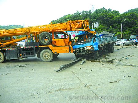 宁波吊车与货车十字路口相撞