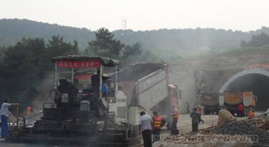 山西省高陵LM3标路面右幅沥青油面试验段摊铺成功