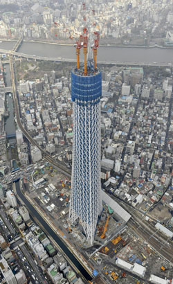 正在建设中的、用于地面数字广播的“东京天空树”(Tokyo Sky Tree)达到338米,超过“东京塔”(Tokyo Tower),成为日本最高的建筑物。