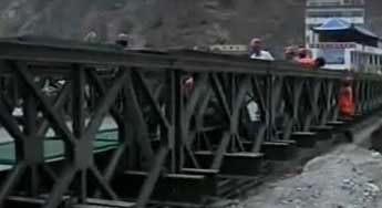 本报讯 甘肃舟曲发生泥石流后,在一支江苏镇江队伍的帮助下,连接白龙江南北两岸的主要救灾通道被打通。 瓦场桥在泥石流中被淤塞,桥的中段灾后因泄洪被炸断。来自镇江的江苏百崮钢结构工程有限公司经过三天两夜的生产,将造好的钢桥送到舟曲白龙江边,甘肃省交通运输厅厅长杨咏中出席钢桥通车仪式。杨咏中说,这座桥不仅仅沟通白龙江两岸,更是清淤的重要通道。因为条件在所有桥梁当中最好,白龙江南岸的大部分清淤车辆需要从这里前往百米外的北岸,两岸的居民也无须再绕一个小时的山路。更重要的是,在新的桥梁建成之前,该钢桥将长期在灾后重建工作中发挥重要作用。