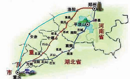 郑渝铁路是中国铁路网中长期规划的重要客运专线,时速350公里,郑渝铁路有三种规划方案:重庆—万州—云阳—巫山—兴山—襄樊—南阳—郑州;重庆—万州—云阳—巫溪—竹山—十堰〔六里坪〕—丹江口—邓州—南阳—平顶山—郑州;重庆—万州—云阳—十堰—洛阳(嵩县—栾川)—郑州。
