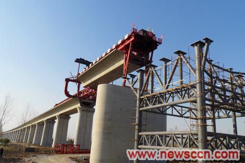 合肥铁路枢纽南淝河特大桥东面箱梁架设全部完成