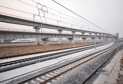 : 京沪高铁上海段。 京沪高铁上海虹桥站。李朝臻 摄