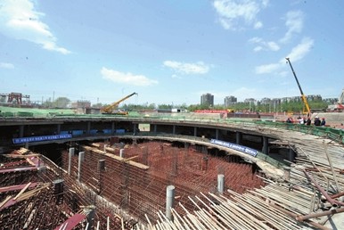 福建闽侯县海峡汽车文化广场现雏形 主体建筑施工进入尾声