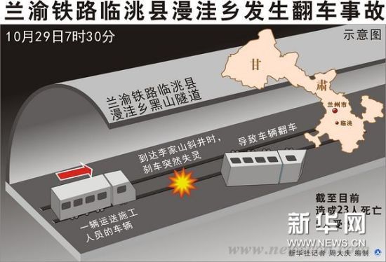 摘要: 兰渝铁路临洮县漫洼乡发生翻车事故 新华社记者 周大庆 编制 这是发生事故的车辆在撞击主隧道体时车辆机油划下的痕迹(10月29日摄)。新华社记者 聂建江 摄 这是10月29日拍摄的事发现场。新华社记 ...