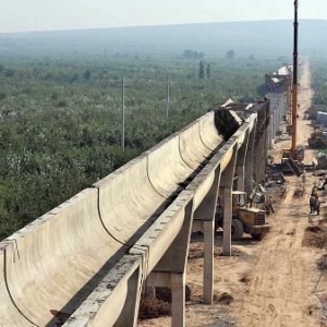 山西省运城夹马口灌区北扩工程是山西省重点应急水源建设工程之一。该工程总投资2.66亿元,2008年3月开工建设,目前该工程已完成投资2.11亿元,新建的泉杜二级泵站等部分工程已建好投入使用。该工程全部建好后,可使临猗、万荣两县10个乡镇83个行政村20万人口40.6万亩耕地受益。据悉,山西今明两年水利建设投资将达到170亿元,今年将开展农田水利灌溉、应急水源、病险水库除险加固等六大重点水利工程建设,解决山西水资源缺乏问题。 图片一: 新建并已投入使用的夹马口灌区北扩工程“泉杜”泵站前池(6月13日摄)。 图片二: 6月13日,施工人员在夹马口灌区北扩工程跨度长为1.8公里的“二郎神”渡槽工地加紧施工。 图片三: 6月13日,施工人员在加紧建设“泉杜”主干渠。