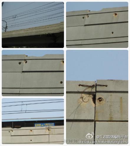 6月14日上午,有网友在南京本地知名论坛爆料,称南京地铁1号线某处高架护栏出现破损,并且有块护栏的三分之一已经突出,该网友称地铁用“电线”固定,存在坠落的风险,给高架下的行人和车辆带来安全隐患。14日下午,南京地铁做出回应,称该破损处位于安德门至中华门高架段,不存在安全隐患,但将在当天夜间进行美化处理。 发帖网友“闹闹龙非虎”于14日上午8点25分发帖称发现南京地铁1号线在某处有块护栏的三分之一已经突出,“仔细看后发现,这块护栏就靠几根细电线固定住”,该网友称“如果掉下来,会给下面行驶的车带来危险。”该网友也同时在新浪微博上贴出“事故”图片。 不少跟帖网友都对此表示担忧,希望南京地铁给出解释。14日下午,南京地铁做出官方回应,称网帖反映的护栏板位于1号线安德门至中华门高架,经现场检查确认:网友反映的该处高架护栏板不存在安全隐患,无坠落风险。 南京地铁解释,护栏板属于轻质加气混凝土材料,地铁高架护栏板通过内置的钩头螺栓与护栏板内侧的工字钢进行固定,且工作人员定期会对护栏板进行巡查检修。此前,检修人员在轨行区巡检时,发现该处螺栓有松动现象,在固定螺栓的同时,又进行穿孔绑扎铁丝于工字钢上,作为补充防护。对于护栏板外侧看起来不够“安全”的表象,地铁专业维护人员将在当天夜间待地铁停运后,进行美化处理。 |