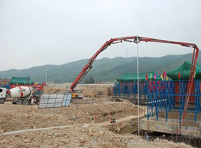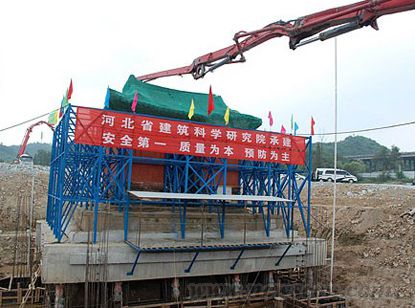 正在为已顶升1米高的西宫门垫层浇筑混凝土