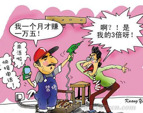 今年以来,装修行业的人工费较去年稳步上涨,而今冬随着外地籍装修工的陆续返乡,再将人工费推高了一个小台阶。 如果不是请零工给自己家装修,白领陈亮都不敢相信装修工的收入原来是那样可观诱人,一度让他萌发了学会一门装修技术干兼职的想法。 陈亮新近将自己位于世博园附近的一套房子装修完后,发现需要适当调整,雇了一位工人帮自己给墙上钻孔并钉几个挂画的水泥钉,工人要价100元,软磨硬磨最后收了80元。“这点小活前后也就半个小时,人家还不愿意来,说趁中午空当挣点烟钱,下午还得赶到另一个客户家帮干活。就在给我干活的期间,工人不时接到约活儿的电话,甚至下一周的活儿都安排得满满当当(微博)。”陈亮说。 因为好奇,陈亮特意给这名装修工算了一笔账,当天共三个活儿加起来收入750元。他说:“我当时问这名工人,这样一个月下来收入岂不是要超过2万元了,对方一点儿不谦虚,回答称没有那么高,一个月一万五六差不多。” 一家装修公司负责人说,去年瓦工的行情也就是200元/天,如果跟着装修公司做还比这个价低,但月收入6000-8000元比较普遍,最近一段瓦工的行情见涨,月收入超万元很常见,而其中的能手收入更高。 |