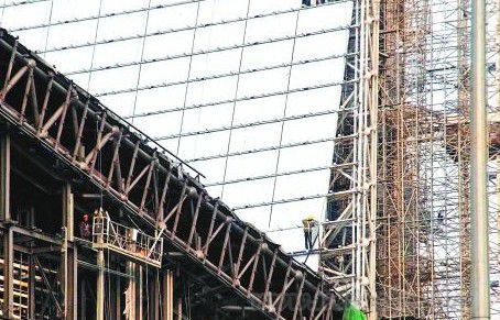 随着央视新址过火楼外部安装保温层工作的结束,工人开始给楼体穿“新衣”。此前,相关负责人表示,此次重新装修将全部使用最好的耐火材料。 昨天,记者在京广桥附近的央视新址看到,大楼主体的新钢架已搭起,工人正乘坐升降机在大楼西侧对其内部保温层做着最后的检查工作。而在过火楼东侧,工人已经开始给大楼安装外墙,面积超过上千平方米。据了解,央视过火楼主体结构已全部“换血”,保温层和支撑钢架焕然一新。机电安装和室内装饰即将全面展开。根据目前的进展,预计修复工程将延迟到2013年全部完成。 在外部结构方面,保温层安装完毕后,工人将给楼体穿新衣,预计持续到下半年。新的墙体结构采用中空“凹凸”设计,与大楼过火前的外部设计保持一致。 |