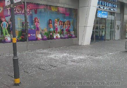 上海五角场万达广场玻璃幕墙突然爆裂