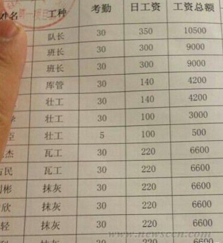 记者发现,根据这张表格显示,作为“工头”的队长、班长,月薪接近甚至超过万元。普通泥瓦匠月薪6600,而壮工的月薪也在3000至4200元之间。网友“双刃防御”说:“这个真不假,乡村里的小工都有120左右一天了,城市里肯定更高。”网友“砼铁鑫”也表示认同:“我们这边一般都是按完成量计算的。核算下来这样的工资不算高。”这张薪水表的真实性得到了不少网友的认同。 一些白领看到薪水表也心生感慨,网友“mousie-恺”说:“我才相当于壮工,只比最少的那位多点。”“独钓寒江一老叟”也说:“偶也壮工一名。”众多白领感叹:“以后都不敢自嘲自己是搬砖的了。”甚至有网友提出“转行说”。 更多的网友则理性看待此薪水表,他们对建筑工人的工资数额表示理解。网友“宋小超宋先生”说:“特别好,就应该这样。很多人看不起建筑工人,但其实他们真是用手艺吃饭,手艺不行就不用,完完全全凭自己真本事。”他还吐槽:“什么时候一堆人挤一小屋子里,面如死灰般的对一电脑用邮件打架成为本事了?”网友“相州河”说:“看到别人碗里有肉就心里纠结,叫您去干搬砖和泥的活计,能干的了吗?” 还有细心的网友发现,薪水表中也显示了工人考勤信息。几乎所有的建筑工人都是一个月30天在工作岗位上,工作时间长。每天的日薪从100元到300元不等。网友们认为,这是工人们辛苦劳动所得。 网友“朵啦Somnus”的话很贴切:“不能只看数字。他们的辛苦也是让大家心疼的。” |