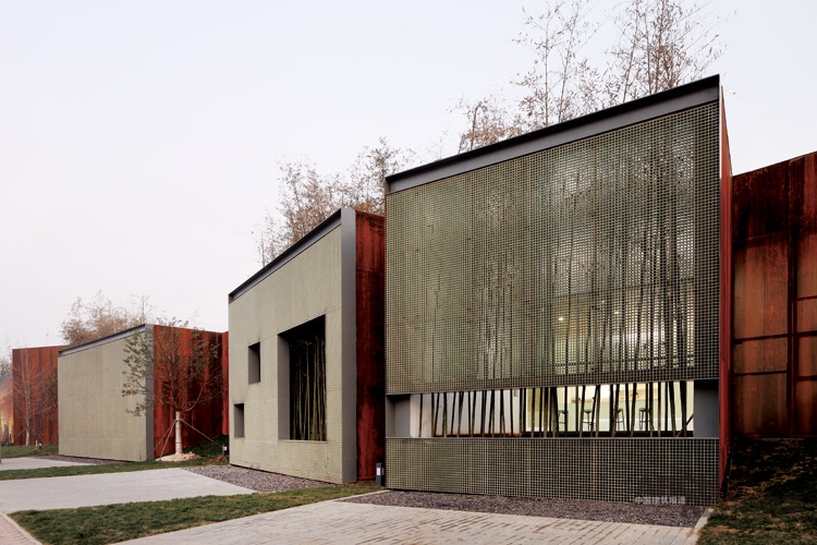 委托人: 华润置地 项目地点:中国 合肥 建筑面积: 900㎡ 设计时间:2009年7月—2009年11月 建造时间:2009年9月—2009年12月 摄影:舒赫 如同中国的很多其他城市,合肥正在经历一次剧变。原有的城市肌理正在成片地消失,取而代之的是一批批没有表情的开发小区和巨型公建。相对于若干年后的城市形态,今天的合肥将仅仅是一个瞬间。 我们称之为“瞬间城市(momentary city)”。 正在被拆除的街区和正在被建设的工地如同一处处伤痕充斥着这座“瞬间城市”,与之俱来的是噪音、灰尘和污染。设计者的课题是如何在此创造一个场所,在这里,人们可以暂时忘却城市的纷乱喧嚣, 体会到飘逝的光影、被风拂动的竹林、静谧的水波、四季的花草芬芳…… 这将是一次瞬间的体验。同时,设计者希望它能转化成永久的记忆。 在室内空间和城市之间,设计者嵌入了6个不同主题的院落空间,分别是竹的院子、花的院子、水的院子等。它们成为建筑和城市之间的视觉联络媒介。院子的端面用工业玻璃钢格栅板分两层进行挂装。在院落的一侧,颜色随院落的主题而变化;而在城市的一侧,玻璃钢无色而半透明。这种细节处理使得这些端面在城市一侧随着视角和远近的不同呈现出视觉差异。夜间,当灯光把院子里的墙和树木照亮时,半透明的双层玻璃钢界面如同一系列不同颜色的发光体, 静静渲染城市的步道边缘。院落的格局和朝向成为内部空间起承转合的内在逻辑。阳光通过一系列位于北侧墙体上方的高侧窗,直接或间接地渗透到空间中。自然光的充分介入,建立了空间和时间之间不可分割的关联。随着一天中太阳的轨迹变化和四季的更替,空间的光影表情永远在变化,也许正是这一个个不可再生的瞬间印象,才是对永久记忆的最贴切的表达。