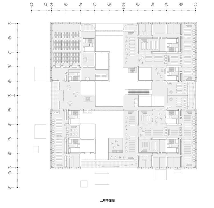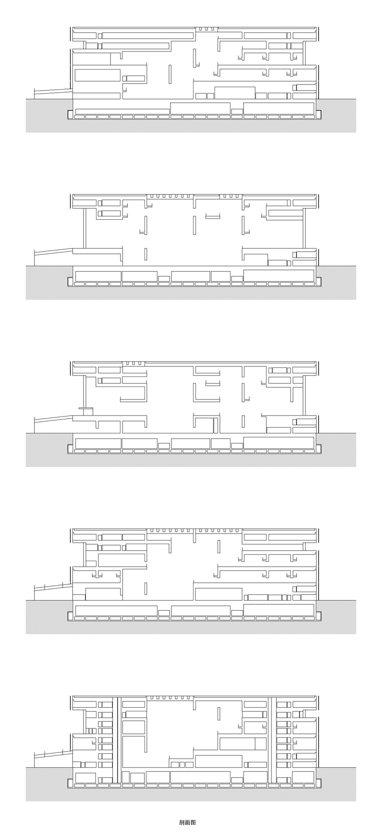 ![]() 项目名称 :天津图书馆 项目地点 :天津 河西区 设计团队: 天津市城市规划设计研究院、山本理显设计工场 设计人员 :山本理显、土岐晃司、赵春水、侯勇军、陆伟伟、韩宁、杨佩然、安志红、贺纯杰、西田浩二 委托人:天津市房地产开发经营集团有限公司 施工单位 : 天津市建工工程总承包有限公司 建筑面积 :54 812㎡ 场地面积 :30 300㎡ 设计时间 :2008年12月—2011年 5月 建成时间 :2012年3月 摄影 :魏刚 为了实现这样的空间,设计者最初的设计意向就是突出墙面。有些墙面围合封闭,有些则开放,从而布置出各种功能用房。有些墙面错位、叠和,构成各式各样的特色迥异的空间。墙面上布满墙面书架。设计者一直按照最初的意向一步步推进直至最后完成。 建筑的结构体系是墙梁构造。高约6m的墙梁呈长20.4m的网格状布置,加上在间距每隔10.2m处的墙面叠合。墙梁原则上是沿网格布置,与功能和空间相对应,有的部分拆除一段、有的部分追加一段。根据这种结构,整个建筑内部形成完全没有柱子的大空间。其中,既布置有较封闭的小空间,也有开放的共享空间。这些空间自然流畅地组合成一个整体。置身其中,犹如在街道中闲游,能够自在地体验各处的景象。 各层的功能构成非常简单易懂。一层以南北贯穿的通廊状大厅为中心,布置了总接待台、展厅、自习室、餐厅和咖啡厅。各种公共空间集合在一起,便于读者使用。越向上层走,图书的专业性越强。2~3层是一般图书和杂志、报纸阅览室,4层是电子阅览室、视听觉阅览室,顶层5层是专业书阅览室及古籍修复、保存空间。 最具象征性的空间是一层,犹如连接公园和平江道的通廊,南北贯通。在这个通廊中,设有总接待台和座凳,它既是整个建筑的中庭,还兼具多种用途。面对中庭,设有展厅、自习室、餐厅等,其间的活动、功能等自然地渗透到通廊中。吊顶高度很高,明亮的自然光从上部的天窗透射进来。虽然是在室内,但犹如街道般开放,各种各样的人流穿插交错其中。 外墙是石材百叶。竞赛时的设计方案是采用双层呼吸幕墙将建筑物包围。入选后,业主提出希望外墙采用石材。虽然使用的是石材,但为了做出轻快透明的效果,设计者提出了石材百叶的方案。宽90mm、厚150mm的花岗岩条,以190mm的间距布置。从斜处看,如同石材的外墙,但从正面看极具通透感。柔和的自然光透过石材百叶进入阅览室,创造出舒适的读书空间。夜间,室内的光线通过百叶散射出来,给人留下深刻的印象。 内装设计极其简练。墙壁重叠组合的特征作为建筑的要领被充分表现出来。阅览室的墙面布置了墙面书架,其他的墙壁均采用白色的铝合金板做饰面。铝合金板和墙面书架的尺寸对齐,宽600mm,高340mm,使得整个墙面具有统一感。铝板的四周做了倒边,3种厚度不同的铝板无规则地穿插布置,形成整个墙面的肌理。大幅墙面看上去不单调。板面的涂料具有光泽,根据角度不同,能够如镜子般产生反射效果。虽然内装的色调是白色,但在不同角度、距离、光的反射下,也表现出各式各样的表情。