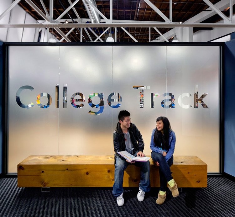 既有建筑原是一座机器工作间,经改造后用做College Track教育组织的旗舰中心。