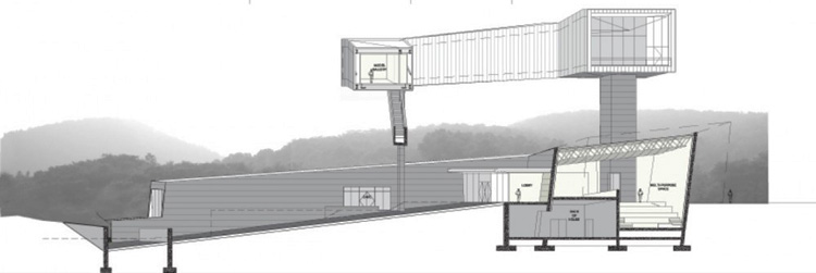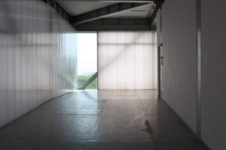 四方美术馆新馆位置在通向当代国际建筑实用展的路口处,博物馆是由一系列平行视角下的空间和深掩在暗色竹林间的花园墙壁组成,上方是一个悬垂的半透明结构,像一个轻盈的岛屿飘浮在云间。建筑下部的黑色混凝土墙运用了具有中国传统文化象征的竹元素,形成一个特殊的肌理效果,并把这一元素运用从室内接待区的家具、书架一直延伸到外部的景观设计。空间大格局的写意化处理并没有影响细部的情节化表达,每一个令人惊异的细节都能让人领略到诗意的感性设计。