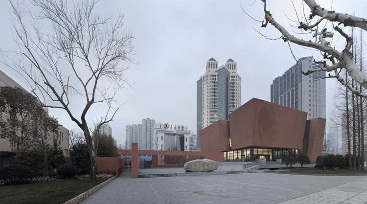 建筑外墙以红灰色为主调,延续了百年徐汇校区的建筑历史文脉。