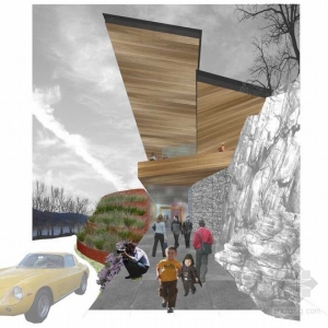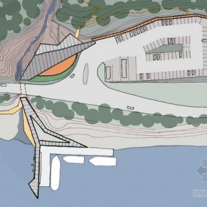 北方大规模的Great Glen古代地质断层,要求一个更高的观测点.繁茂高大的树木就成了这一更加高级的观测点.该地块有一个十分引人注目的轮廓,此处有包含丰富的植物.是苏格兰地区独特的生物多样性地区. 建筑师们认为在这里, 自然生态和美丽的土地都不足为奇, 因为在此处对自然的理解是建筑项目中非常重要的一个环节. 建筑师们在设计这一项目的时候. 注意与周围的自然景观和谐共处, 并以此来鼓励人们探索自然和周围狭长的湖区. 该地区急剧上升至北A28,在停车场后面有一片桦树和橡树组成的自然林地。在西南边界处又一条小溪形成的狭窄的水道。该地区制高点可以欣赏到美丽的自然景色,以及整个湖区繁华的景象。树林石头岸边沿着东南方向的道理,提供了一个不间断的视野,和一个游玩嬉戏的空间。阳光明媚的时间里,人们可以在这里尽情的游玩。这一地块的功能设计十分精巧,从建筑到后面的停车场,可以通过一个有庇荫的通道直接到达。在建筑里有一个轻松的釉面路线,向下通过一个长满青苔的地下通道可以到达下面的超市。自然景观的最大化要求窗户朝向空旷开阔的地方,并让自然阳光照射进来,这样才能在这个地址上创建一个更吸引人的建筑。游客可以穿过地下通道来到树木繁茂的海岸,一系列领先的坡道和楼梯可以带游客去船只码头或者凸起的眺望台。除此之外的甲板散步区域,座位区域沿海而设,以便于阳光灿烂的日子里人们游玩休息之用。