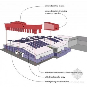 该项目的定位是促进当地经济发展的战略选择,同时也促进周围建筑的改造,由能耗型转变为节能环保型的建筑,为该区域提供可持续性发展的途径。在这个建筑中,白色绝缘泡沫涂料喷在屋顶上,以起到隔热、保温的效果,在其上阵列着太阳能电池板,为室内各项设施提供了能源支持。另外,这里还有一个商业演示厨房,它是高效新能源的“受益者”。在这个能源中心,还有一个功能称为“智能家居”,它连接着各种最新的节能住宅电器、LED日光灯照明设备、节水设备,暖通设备,家用电动汽车充电、太阳能发电和储能系统。