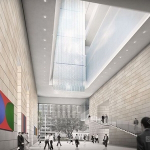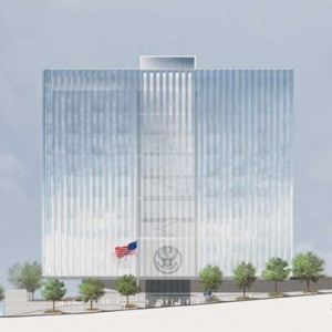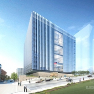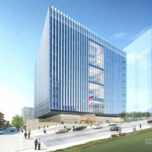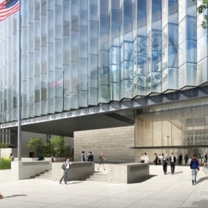 去年12月,美国总务管理局宣布SOM赢得了洛杉矶联邦法院的国际建筑设计比赛。SOM建筑设计公司打败了其他三家公司,成功的设计了这项耗资3.18亿美元的项目。55741平方米的建筑面积,将承载美国地区法院和加州中区24个法院,和32个司法厅(俗称The Cube)。因为建筑在外形上是四方体的设计,厚实的建筑建在一个非常小的台面上,创造了一个浮动于街面的幻景。新法院将是非常节能的,它将配备一个225千万的混合冷却加热和电力系统和一个节约水源的装置。在屋顶上,安装了一个400万千瓦的光伏列阵,每年可以生产525000千瓦时的能源。被动加热和冷却液被考虑在内。法院的锯齿状外观能够最大化的收集日光,这样的设计同时也能够保证建筑物内部的自然冷却。建筑物预计可以获得LEED白金认证,并将于2016年完工。