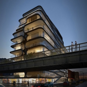 扎哈•哈迪德的设计使得城市及其绿色空间产生了互动,这是通过一些外部图案实现的。 通过V形线条,户外与室内达到整合状态,楼体被广阔的露台包围,透过玻璃可以一览公园和城市的景致。一共有37个单位将被安置在这里,每个占地5,500平方尺,可以享受亲切富足的生活。电梯集中安置,是为了居民能够轻易的穿越整个大厦,而许多个人套房设有一个私人入口,以保持必要的隐私。高达的入口大堂欢迎主人归来,提供一些公共空间和室外花园的景观以供观赏。这里还将包括一个室内游泳池和水疗中心,娱乐空间,游戏室和一个宽敞的屋顶露台。扎哈解释说,她的设计体现流畅感,创造建筑的整体感,重塑了一种空间体验,赋予每个居民自己独特的身份,提供给他们以多角度的观景享受。