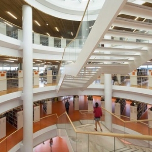 在过去的二十年里,都灵大学作为原工业用地上建起来的新设施已经逐渐现代化。Foster + Partners描述了这一建筑“用现代的方式诠释了传统的四角庭院”。这段描述形容的正是两个单独的建筑,中间由一个树冠型屋顶连接。树冠型屋顶让大量的日光漫射金土建筑,减少了中庭的人造光。总体来说,被动式的建筑模式可以节省建筑能源需求的20%。外立面的曲线特性和圆润的边缘是由整个建筑不同寻常的形状和建筑屋顶模式的需要而建的。一个复杂的三维钢结构架在屋顶之上。建筑物的内部,是由Foster + Partners设计的可以满足学校需求的可变换的教室和演讲大厅。这座建筑还有一个屋顶花园,在这里有一个安静舒适的学习空间。