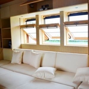 威卢克斯窗简洁的中悬开启方式,增进了房屋的居家便利和使用舒适。双层中空玻璃有良好的保温、隔热、隔声和防紫外线的效果。双层窗帘的设计,分别为住户的隐私、采光、遮光作出了贴心的选择。窗体手柄处设有微量通风口,有利于冬日的室内换气,换气量达到10m³/h。微量通风口的设计还有效避免了通风时冷风入室降低温度的情况。威卢克斯为E-CONCAVE的内部舒适提供了巨大的支持,和统一的室内设计协同,为室内的舒适和便利添上亮点。