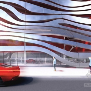 整座博物馆将转变成一个世界级的汽车博物馆,展示汽车领域的艺术,历史,文化和遗产。由 Kohn Pedersen Fox公司设计的博物馆外部结构将成为该地独特的地标,也希望能吸引更多的建筑和汽车爱好者。皮特森博物馆的董事主席说“在过去的20年里,皮特森博物馆以其神奇的收集以及集教育和娱乐为一体设施吸引了众多游客。”但是现在很难再让游客来皮特森博物馆参观了,因为人们会跟自己这样说“我已经去过那里,所以没有必要再去一次了。”所以他希望,这次对博物馆的彻底翻新可以每天吸引60%的人再次来到博物馆参观。为了设计出引人注目的外观,皮特森博物馆和KPF建筑公司以及著名的建筑金属专家Zahner一起,想出了在建筑外部三面立面和顶部深红色的建筑上安装不锈钢长丝带。这样的外形可以唤起人们对速度和有机曲线教练车外形的理解。晚上的时候,会在钢铁下面装上彩灯,这样从内部散发出来的灯光就可以更加彰显建筑外部的雕塑。对原建筑进行的这些翻新,并不会原建筑有太大的影响。翻新还将延伸到博物馆的内部,一个1393.5平方米的陈列广场将被添加在新的建筑内部。重新设计的画廊将采用最先进的照明系统,实现数字化陈列,并建立创新学习站。在这里人们可以欣赏到整个20世纪,汽车领域杰出的人物和创新的机器。永久珍藏区将恢复和升级包括具有历史意义的美国和欧洲的经典汽车款式,开创性的赛车,最新的替代性燃料技术,好莱坞的传统汽车,甚至是在洛杉矶设计和建造的各种汽车。