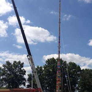 这座积木塔现在是全世界最高的积木塔,而上一个纪录保持者建造的积木塔大约有106英尺那么高,略逊于现今的这座。这个高中团队以五层楼高的建筑为平台,完成了这个惊人的塔。仅靠塑料这一种材料,整座塔不能够支撑全部的重量,因此,建设者得围绕一个大金属管,来堆砌这500000块砖,并且,在构建过程中还需要使用升降机。