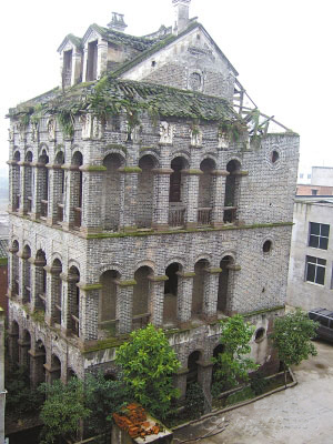 墙壁上的射击孔 沙坪坝区凤凰镇威灵寺村,惊现一座神秘的西式城堡,层层设防,步步机关,刀枪不入。昨日,四川美术学院雕塑系主任焦兴涛、重庆美术馆馆长冯冰等多名知名艺术家,专程前往考察,并希望能将该城堡作为一处艺术创作基地。 机关密布层层设防 墙壁也密布射击孔 位于凤凰镇威灵寺村的这栋建筑,形似碉堡,四四方方,斜顶,青砖灰瓦,两楼一底,罗马式的圆拱窗和门,建筑面积千余平方米。碉堡四周筑有4.5米高的黄土封火墙,当地人都称其为洋房子。 令人惊讶的是,洋房子将防御入侵功能发挥到令人瞠目的地步:四周高墙,每堵墙上有数十个碗口大的洞,洞口外细内阔。市文物专家称,这是射击孔,外来者不管从什么方向,甚至攻击到洋房子外墙根下,都不能躲避楼内射出的子弹。因为,封火墙里,还埋着若干掏空了的竹竿。 即使高墙被攻破,洋房子的墙壁也密布射击孔,大门一关,同样固若金汤。楼内每一间屋、每一层楼之间,都设有坚固的门和盖子等不同的隔离和射击设施,如果要攻到顶楼,至少得突破近10道关卡。 原主人是当地首富 模仿洋行清末建成 当地78岁老人苟明介绍,以前小楼四周还有四个碉堡护卫,文革后期被拆除。自己的母亲解放前曾在这户人家当保姆,据说当时佃客有40人,遇紧急情况佃客拿起武器,变身家丁。 洋房子的修建者究竟是谁?为何而建?文物工作者通过艰苦努力,找到了修建者陈卫兵的外曾孙女杨惠。如今身处四川宜宾的杨惠介绍,洋房子建于清末,当时外曾祖父只有20多岁,读书去重庆,见到当时许多洋行样子,心生羡慕,发誓也要修建一座同样的哥德式洋楼。 陈卫兵下定决心后,自己设计了楼体、回廊和一个小花园,外墙是寓意发财的大白菜浮雕,内厅各层顶上是寓意荣华富贵的牡丹和延年益寿的松鹤,小楼外有两个大石缸,用于养金鱼和消防。 以洋碉堡为中心,陈卫兵还修建了不少土木结构的平房,分三个院子,院院相通,院院相离,共69间房屋。陈家当时是当地首富,整个建筑占地40多亩,还有荷塘、戏台等,光是房屋家具上的木雕,7名工匠耗时3年才完成。为了防备当时猖狂的“棒老二”(土匪),陈卫兵加建了坚固的防御设施。 杨惠说,解放后祖屋充公,陈家搬离。外婆是一名知识女性,通医术,常免费为村民看病,还修水渠、办学校,灾年减租免租,日寇大轰炸时接济灾民无数。因此,自己一家很得百姓照顾,土改时没受到任何为难。 文物部门挂牌保护 如何利用征求意见 如今,洋房子的楼板、楼体破坏殆尽,屋顶塌陷,屋内积满狗屎等秽物,周围被几栋违章建筑包围。 沙坪坝区文管所负责人介绍,发现洋房子时,有村民正朝屋子里注水,企图让房屋“自然垮塌”,以便新建房屋租赁赚钱。文物部门立即挂牌保护,这才保住这栋沙坪坝区最老的建筑。 沙坪坝区文广新局局长李波说,发现洋房子后,有开发商前来接触,提出联合开发。但文化部门希望这栋极具文化底蕴的建筑,能更好的发挥功用,目前正寻求一个更合适的开发方案。希望通过本报,向市民征集相关保护和开发建议。 现场考察过洋房子后,四川美术学院雕塑系主任焦兴涛老师认为,这是一座很独特的建筑,如果做一个艺术创作基地,不光能很好的保护和发挥其功用,还可以带动周边地区的发展和繁荣。 |