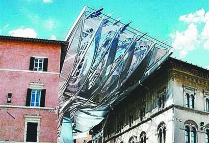在古朴的意大利城区里,一眼望去,好像有个电子机械怪兽在“啃食”这片老城区。但那实际上是在意大利佩鲁贾市新建的一个发电走道。这个“能量屋顶”由CoopHimmelbau设计,可以通过风能和太阳能两种方式发电,还能作为这个展览区的顶棚。在这个展览区里,一项城市古迹正在发掘中。历史文献表明,在佩鲁贾的这一片地区(吉亚科莫·马泰奥广场下方),存在着一个古旧的伊特鲁里亚城墙,这在历史学和考古学方面都是重要的文物。佩鲁贾大学正在这里进行一项研究工作,要将佩鲁贾的历史呈现给公众,Coop作为协助者,就沿着维亚·马兹尼建造了一个顶棚,用以辅助下方的考古发掘工作。这个“能量屋顶”将成为一个用于展览佩鲁贾历史的地下展览馆的入口。而这个通道也连接着附近的一个去往市中心的地铁站。 能量屋顶由风能和太阳能驱动,能做到自给自足。顶棚西翼覆盖着透明的太阳能电池,可以转动方向以达到最大的发电效果。东翼安装着五个风力涡轮机,由风驱动发电。这看起来确实是加盖在城市上空的一个很疯狂的建筑,但它太有创造性了,能成为一个样板,其他城市再建造类似的可再生资源发电设备时,也可以像这样把它做成一个城市的标志性建筑。