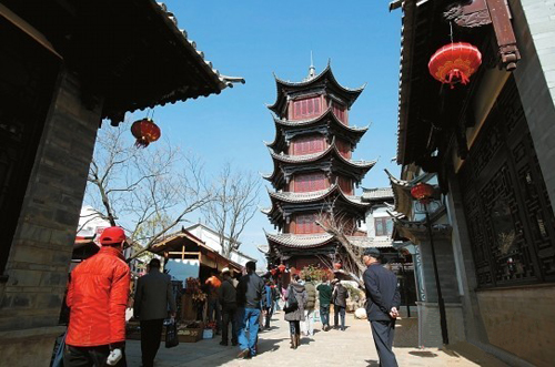 青砖碧瓦的仿古建筑,惟妙惟肖的马帮雕塑……2月14日,拥有18幢仿古商业建筑的昆明故城正式开市,向市民游客免费开放,成为云南民族村新的入口之一。 昆明故城坐落于云南民族村旁,其拥有18栋装修古典、自成一体的商业楼,占地约50亩,经营面积2万多平方米。与民族村内的少数民族村寨不同的是,昆明故城原貌展现了明清风格的老昆明建筑,充分体现了老昆明闲适的市井文化。不仅为各类商家提供了经营场所,同时也是附近居民及广大昆明市民开展商业活动、休闲娱乐、购物及体验民族风情的重要集散地,也将成为众多游客驻足之地。“昆明故城开市,既是打造品质春城的具体举措,也是云南民族村升级业态、拓展服务功能的重要方式之一。”云南民族村总经理袁兵谈到这一新城的意义时,向媒体如是说。 |