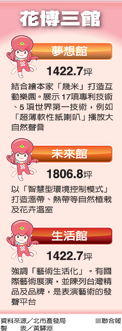 绿色概念全球发烧,年底登场的台北国际花博会耗资11亿元打造新生三馆“梦想馆”、“未来馆”、“生活馆”,不但取得台湾钻石级绿建筑的候选证书,Discovery频道还制作节目,将在全亚洲32国播放,让花博站上世界舞台。