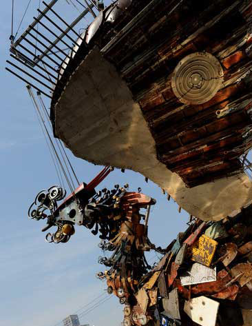 摘要: 2010年3月27日,北京朝阳区百子湾路今日美术馆门前,出现了两只巨大的凤凰。凤凰由建筑垃圾废料组成,身长28米左右,重6吨,由中央美术学院副院长徐冰历时两年创作而成。凤凰全身分为9个部分,组成材料有油桶、灭火 ...
