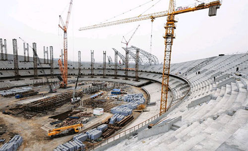 正在建设中的山西省体育中心 春暖花开,正是大好施工时节。位于太原长风商务区上的山西省“省城十大建筑”施工现场,人声鼎沸、热闹非凡,数十台高耸的塔吊长臂挥舞、繁忙起降,近百米的钢结构网架上工人正焊接钢管、小心作业,北到煤炭交易中心,南至山西体育中心,5000多人的建筑大军正在此会战,斗志昂扬,奋勇争先,保质量、保安全、保进度,倾力打造精品工程、时代工程。 山西省重点办最新统计数字显示,今年以来,省城十大建筑共投资2.88亿元,加上去年完成的40.24亿元,省城十大建筑现已完成投资43.12亿元,十项工程正精心组织、倒排工期、科学施工,按照节点目标任务顺利实施,建筑工人已达到7000人。 由山西省工务局负责的四项重点工程,已顺利建成了总建筑面积27万平方米,山西省图书馆、山西省科技馆、山西大剧院和山西体育中心的7座单体建筑主体结构全部封顶。今年春节刚过,四项工程全面复工,目前,进场工人已达3000余人。山西省科技馆、山西省图书馆以及山西体育中心的主体育场、游泳馆、体育馆、自行车馆等项目,在总包队伍进行砌体结构施工、管线布置和外墙防水工作的同时,专业承包单位已开始钢结构的拼装和吊装以及消防管道的安装。 山西大医院工程项目部加强管理,开展劳动竞赛,组织各总包单位争分夺秒保安全上进度,今年一季度完成投资4928万元,远超300万元的季度计划,提前20天完成一季度目标任务。 太原铁路南站工程克服现场障碍物长期干扰造成的影响,采用优化组合方案,充分利用钢结构工程的施工特点,动员全体职工仅在大年初一休息一天,加速了东站房和南北雨棚工程的建设,赢得了今年一季度工程的跨越式进展。 据山西省重点办相关负责人介绍,省城十大建筑的各工程项目的指挥部、施工单位和监理单位都建立健全了质量保证体系和各级质量岗位责任制度,认真编制了建设工程施工组织设计和专项施工方案。 对省城十大建筑而言,如果说2009年是工程推进年,那么2010年就是质量安全年。省重点办已明确提出,将一如既往地坚持质量第一的方针,一以贯之地树立安全高于一切、先于一切、重于一切的理念,尽职尽责抓好工程质量和安全生产,确保精品示范工程。 |